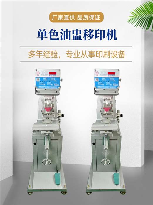 油杯式移印機(jī)是屬于移印機(jī)中的高端機(jī)型,在印刷過(guò)程中油墨完全密封在杯子中,調(diào)好油墨的粘度后,就可以一直保持良好的印刷品質(zhì)及穩(wěn)定性,但高昂的機(jī)器價(jià)格和后續(xù)的配件成本令很多工廠負(fù)責(zé)人很難接受,全新開(kāi)發(fā)制造的小型油杯式移印機(jī),鋼板可用薄鋼片及厚鋼板,耗材成本控制更多選擇,(選擇油杯移印機(jī),感受更高品質(zhì)的移印工藝) 。